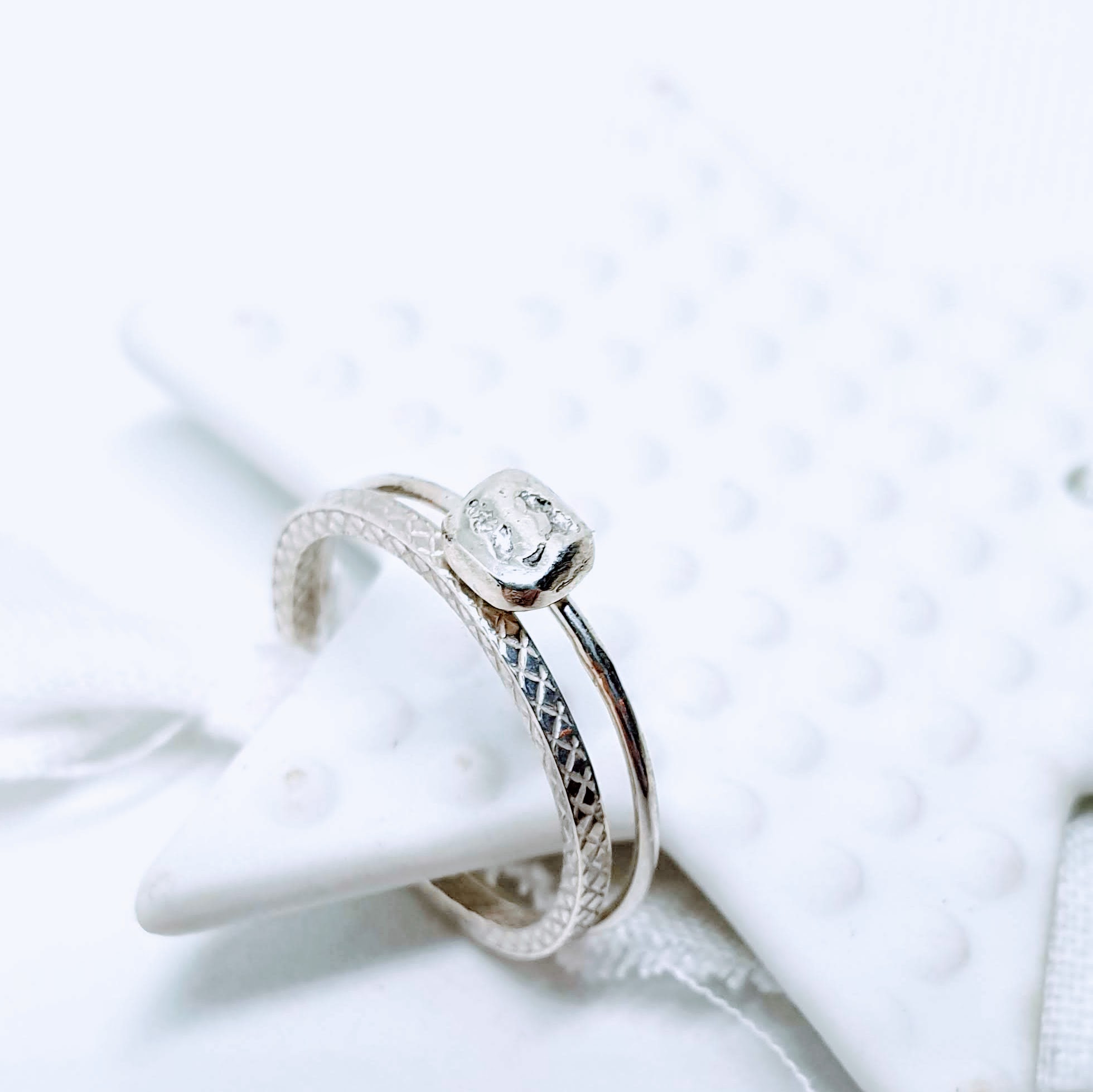 La bague médiation est en argent massif. Composée de 2 anneaux en argent massifs.